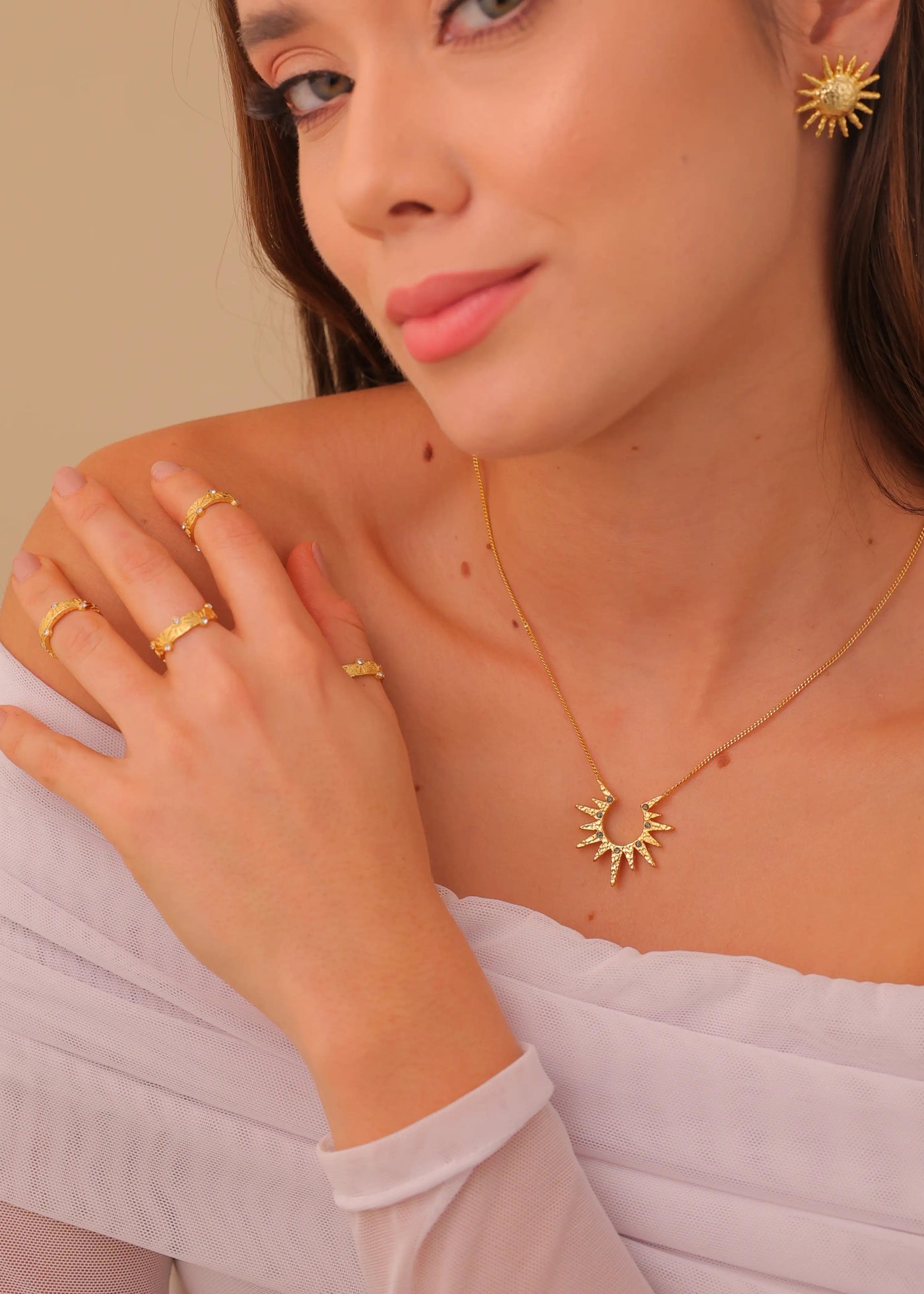 Todos nuestros collares y pulseras incluyen una extensión de 7 cm para ajustar según sea necesario, y todos nuestros anillos son ajustables.